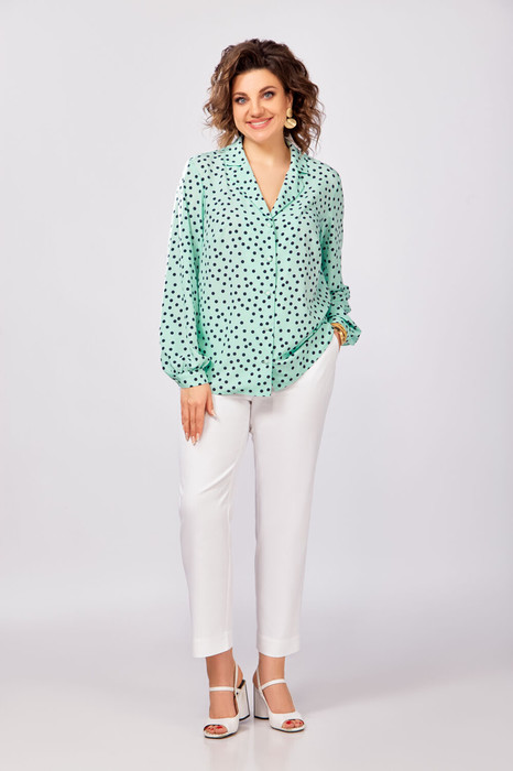 Совместные покупки Омск Женская одежда Блузки, рубашки — Блуза Swallow 842.2 Мята в темно-синий горошек