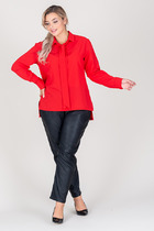 Блузка из плательно - блузочной ткани свободного силуэта. Спинка с кокеткой и встречной складкой. По переду центральная застежка на кнопки, сверху накладные карманы с клапанами. Втачной рукав с отстегивающейся нижней частью. По низу рукава манжет с кнопкой. Воротник рубашечный со стойкой.