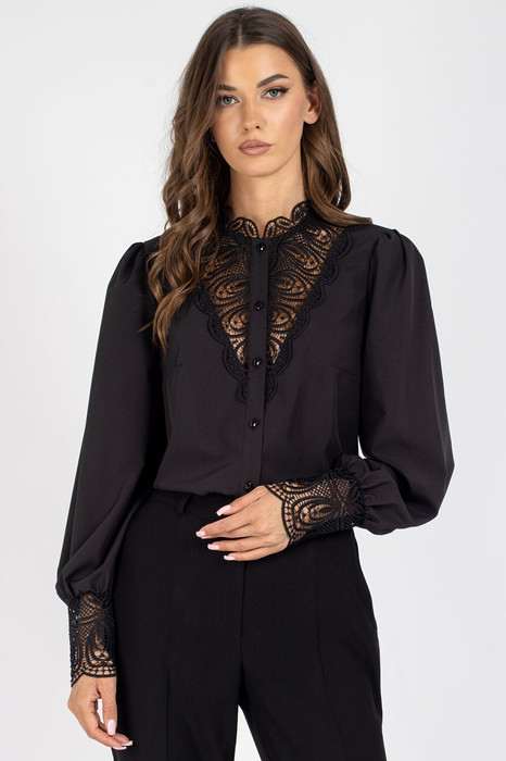 Перед с нагрудными вытачками и центральной бортовой застежкой, выполненной из кружева.
