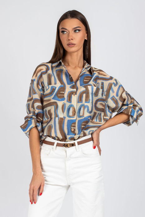 Блуза VIZAVI 725-Р бежевый+коричневый+голубой