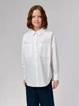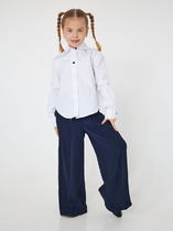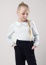 Трикотажный блуза из линейки VAY KIDS школа. Отложной воротничок, застежка на пуговицы с ажурной отделкой.