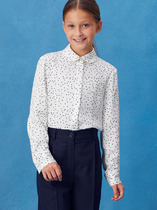 Блузка из высококачественного трикотажа (качество пенье), на полочке имитация планки на пуговицах, длинный рукав на манжете из эластичного кружева. Воротник , отложной с застежкой сзади на пуговицу. Блузка отличное решение для школы на каждый день.
