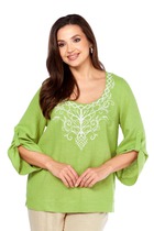Романтичная блузка из шифона, свободного кроя. Рукав длинный, втачной, с резинкой по низу. Особую оригинальность этой блузке придает бант на горловине. Эту нарядную блузку можно комбинировать и с юбкой, и с брюками.