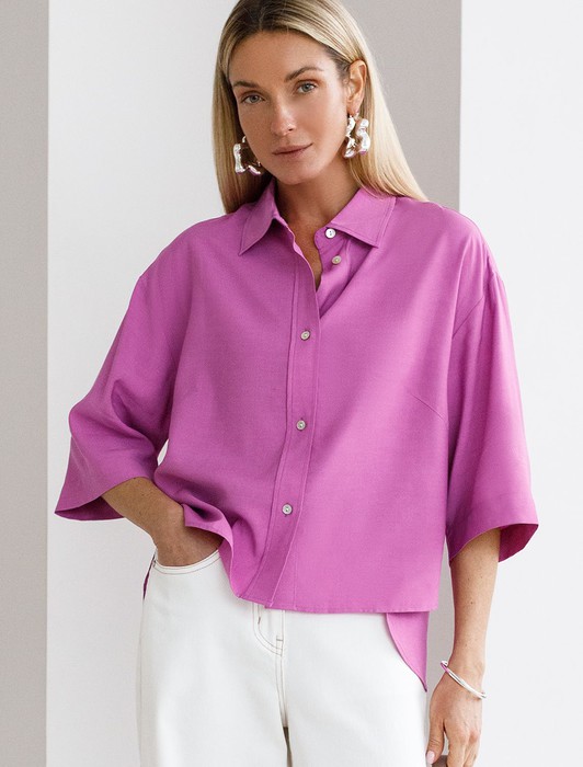 Состав: 55%Лиоцелл (Вис) 45%Вис Плотность: 145 Г/м2Летящая блузка с отложным воротником выполнена из премиальной вискозы и лиоцелла. Мягкий фактурный материал струится по телу. Вискоза обеспечивает отличную воздухопроницаемость и поддерживает комфортный микроклимат. Модель дополнена пуговицами из натурального перламутра, на спинке изделия металлический логотип бренда. Отлично впишется в нестрогий офисный дресс-код или в расслабленном повседневном образе с джинсами и юбками.