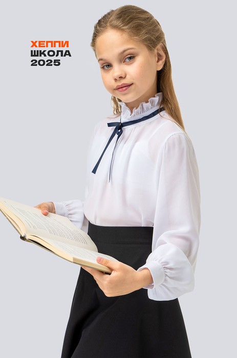 Детская блузка для девочки подростка выполнена из струящегося шифона. Сочетание объемных рукавов-фонариков, аккуратных сборок, изящной ленточки на шее и воротника-стойки делает образ невероятно нежным, воздушным и опрятным. Эта белая блузка для детей станет любимым элементом школьной формы и точно покорит сердца окружающих!