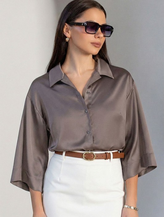 Совместные покупки Омск Женская одежда Костюмы, комплекты — Блузка с короткими рукавами из плотного струящегося сатина