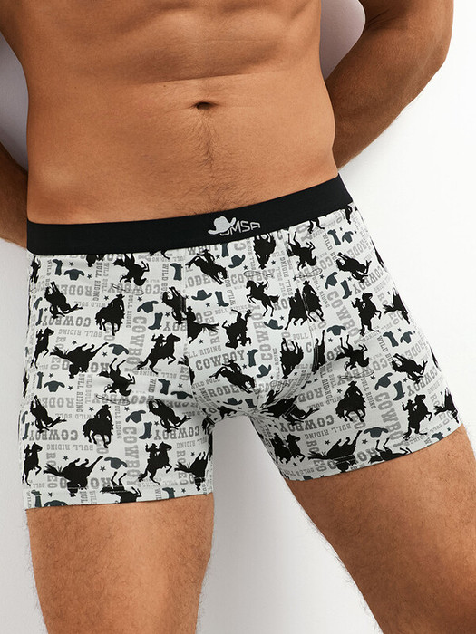 Мужские трусы-боксеры со средней линией талии, открытой брендированной резинкой и стильным принтом.
