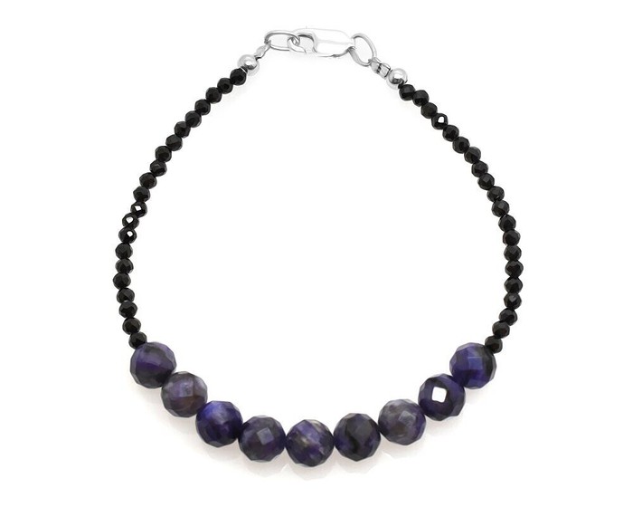 Браслет, арт.642361 Серебро Серебро 925, р. 17, 4,2 гр., чароит шар грань 6 , 0 Якутия , шпинель шар грань 2 , 5 чёрная Памир