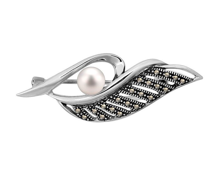 Вес: 5.17 г Вставка: Марказит Цвет камня: Белый Производство: Таиланд Покрытие: Оксидирование Количество: 6Брошь, арт.656348 Серебро Серебро 925, 5,17 гр., жемчуг , марказит