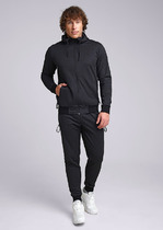 Мужские брюки из футера с лайкрой. Декоративные карманы, нашивка, по низу манжеты, пояс на резинке.