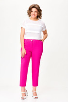 Брюки прямого силуэта с имитацией запаха на притачном поясе. По переду застежка на тесьму-молнию. По боковым действующие карманы.