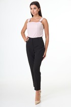Элегантные,  с высокой посадкой и красивым облеганием бедра брюки. Застроченные стрелки прилают стройности и шика. Низ брюк умеренно широкий. Ноги при таком крое учеличиваются в длине. Застежка на потайную тесьму-молнию в  боковом шве.