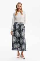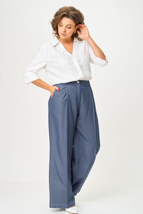 Джинсы палаццо — идеальный выбор для тех, кто ценит стиль и комфорт. Модель выполнена в трендовом стиле с широкими штанинами, что придаёт ей модный и расслабленный вид. Джинсы палаццо с защипами и складками спереди, с боковыми карманами, идеально подходят для создания повседневных образов. Брюки отличаются свободным кроем, что в сочетании с резинкой по поясу добавляет комфорта при носке, а также делает их подходящими для любого типа фигуры. Добавьте эти стильные и универсальные брюки в свой гардероб, чтобы легко создавать модные образы на каждый день!