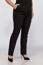 Зауженные книзу за счёт вытачек по передним и задним частям. На передних частях брюк обработаны карманы с отрезным бочком.