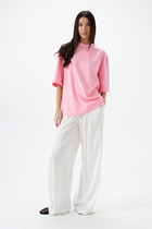 Идея повседневной элегантности обретает здесь свою совершенную форму — мягкий трикотаж, струящийся свободным кроем, нежно обволакивает фигуру, даря ей полную раскрепощенность. Высокая посадка становится основой безупречного силуэта, плавно ведущего взгляд от тонко подчеркнутой талии к изящному заужению книзу, созданному изящной вытачкой для идеальной посадки по ноге. Притачной пояс завершает эту гармонию линий, обеспечивая комфорт, который не приходится проверять, а боковые карманы добавляют практичной лаконичности.