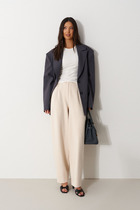 Брюки свободного кроя, зауженные к низу, выполнены из хлопкового полотна серого цвета . Характеристика: свободный крой, брючины заужаются к низу, пояс на резинке, имитация гульфика, в боковых швах карманы. Длина по боковому шву 94 см.