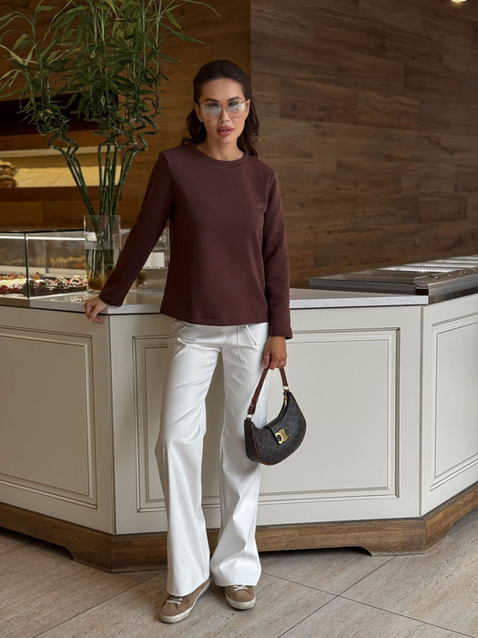 Эти брюки станут глотком свежего воздуха среди широких силуэтов и брюк палаццо. Их облегающий крой подчёркивает линию бедёр и тали, а затем изящно расклешается от колена.Такой фасон позволит скорректировать фигуру. Выполнены из практичной экокожи. Удобство в уходе позволяет носить их в самые слякотные дни.