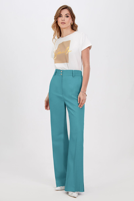 Классический шик! Модные и абсолютно удобные, широкие брюки с косыми боковыми карманами будут сопровождать вас в повседневной жизни. Модная длина создает стильные образы, подходящие как для офиса так и для повседневных мероприятий. Изделие на притачном поясе со шлёвками, собранном на эластичную тесьму по спинке и застёжкой по переду на молнию и петли-пуговицы, выполнили из приятного однотонного материала на основе льна. В пару к брюкам можно подобрать жакет из той же линейки для создания готового комплекта.
