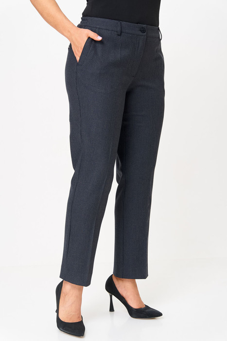 Идеальные брюки для холодного сезона.Прямой крой, плавно сужающийся к низу, и четкие стрелки создают элегантный силуэт. Плотная ткань согреет, а скрытая резинка по бокам обеспечит идеальную посадку без дискомфорта. Стильные разрезы по низу и аккуратная имитация карманов сзади завершают безупречный образ.Это не просто классические брюки, а усовершенствованная модель для холодного времени года. Длина брюк по боковому шву 97 см.
