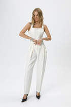 Особенностью модели является высокая посадка брюк с облеганием по фигуре.