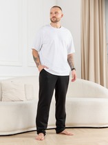 Мужские брюки из футера с лайкрой. Вертикальные полоски по бокам, внизу манжеты, пояс на резинке с вдетым шнурком, имеются карманы, декоративная вышивка. Размеры от 48 до 54. Есть возможность розничного заказа данного товара.