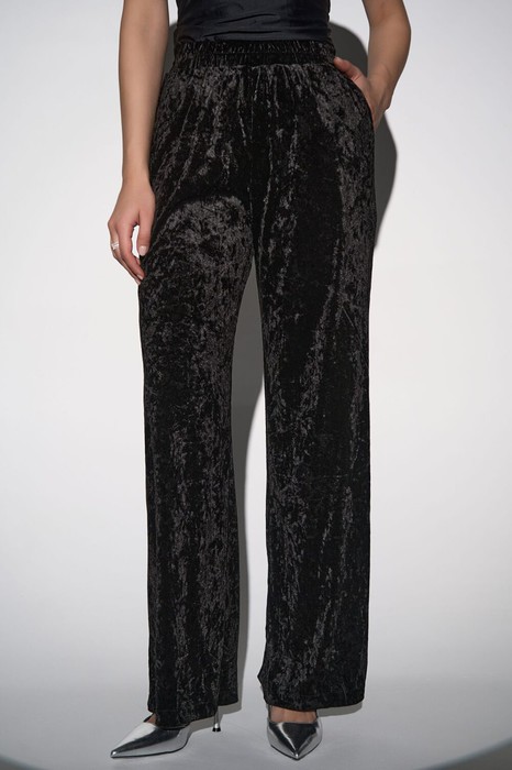 Комфортные брюки на резинке идеально дополняют верх, обеспечивая свободу движений. Свободный крой и лёгкая драпировка бархата создают элегантный, непринуждённый силуэт. Брюки легко комбинируются с обувью на каблуке или балетками, делая образ завершённым и гармоничным