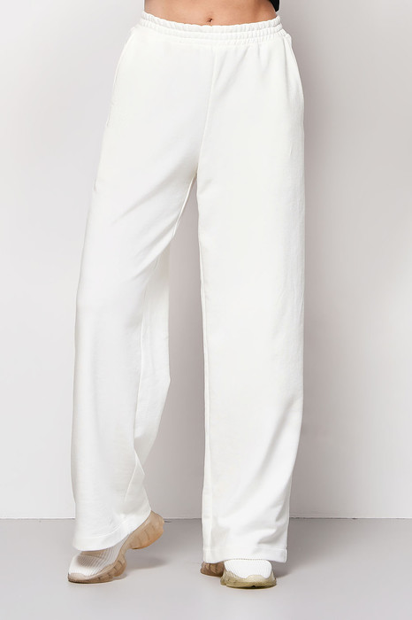 Женские брюки (спортивные штаны) свободного силуэта с функциональными карманами в боковых швах расширяются к низу, пояс брюк полностью на резинке. Брюки выполнены из высококачественного футера 3-х нитки класса "пенье". Лицевая сторона ткани гладная, изнанка - петлеобразная
