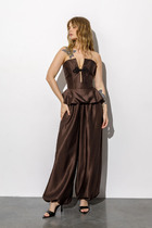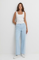 Брюки идеально подчеркивают фигуру, плотно облегая верхнюю часть и плавно переходя в прямой крой к низу. Уникальный элемент — элегантный запах, который добавляет нотку изысканности и утонченности. Пояс-кокетка обеспечивает комфорт благодаря вставленной эластичной тесьме на спинке. Застежка на потайную молнию в левом боковом шве и петлю-пуговицу. Вытачки на задних частях обеспечивают идеальную посадку, а шлёвки на поясе позволяют легко дополнить образ стильным ремнем.