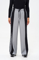 Брюки свободного кроя, верхний срез представлен широкой резинкой, с карманами.