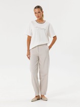 Прямые брюки-палаццо из струящейся вискозы. Брюки на широком поясе, в который вставлена декоративная тесьма. Функциональные карманы в боковых швах. Глубокие односторонние складки спереди и прорезные карманы – обманки сзади.