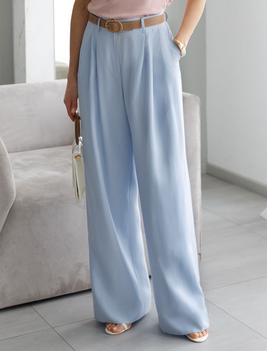 Состав: 92%Лиоцелл (Вис) 8%ПЭ Плотность: 180 Г/м2Брюки палаццо голубого цвета выполнены из плотного лиоцелла. Лиоцелл это более дорогой и экологичный вариант вискозы, очень прочный и шелковистый. Ткань отличается от регулярной коллекции из лиоцелла - она содержит еще больше лиоцелла (92%), благодаря чему имеет более нежную шелковистую фактуру. Свободные прямые брюки с высокой посадкой визуально вытягивают и стройнят фигуру. Удобные карманы по бокам и свободный крой делают эти брюки базовым элементом гардероба. Летние брюки отлично сочетаются с монохромным верхом, с ними можно создавать эффектные наряды как на выход, так и для ежедневных рабочих дел или простых прогулок, от делового шика до повседневного кэжуал. Комплект из лиоцелла подчеркнет ваш вкус и статус. Это идеальный выбор для особенных моментов. Такой образ будет уместен на торжественных мероприятиях и приемах, выпускных вечерах, семейных праздниках и свадьбах.