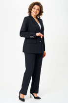 Детали: высокая посадка, притачной пояс со шлевками, передние половины с небольшими застроченными мягкими складками и заутюженными стрелками, застежка на молнию и пуговицу, боковые карманы. Задние части брюк с вытачками и заутюженными стрелками. Пояс брюк прямой, без резинки.