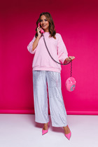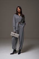 Брюки – из гладкокрашеного трикотажного полотна "кулирка с лайкрой"длинные, классического кроя, на притачном поясе с эластичной тесьмой внутри и карманами в боковых швах. Передние половины брюк застрочены по центральным линиям. По центру пояса настрочен декоративный элемент
