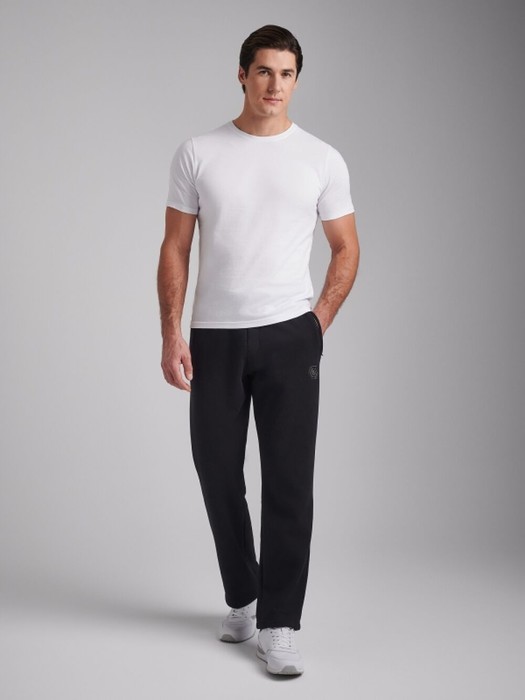 Брюки мужские из плотного и мягкого хлопкового трикотажного полотна с изнаночным начесом. Карманы с планками застегиваются на молнии. Низ брюк заужен с манжетой на эластичной резине. Пояс по талии дополнительно регулируется шнурком.