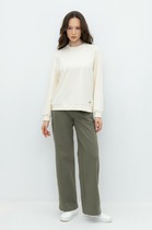 Теплые женские брюки изготовлены из водоотталкивающей плащевой ткани с мембранным пленочным покрытием. Брюки прямого силуэта утеплены высококачественным полиэфирным материалом. Подкладка - гладкая полиэфирная ткань. Карманы брюк прорезные, с молниями. Под левым карманом нашивка с фирменным логотипом. Пояс брюк с внутренней стороны изготовлен из мягкого ворсованного трикотажа, Для регулировки брюк по талии предусмотрена резинка и шлевки для поясного ремня.