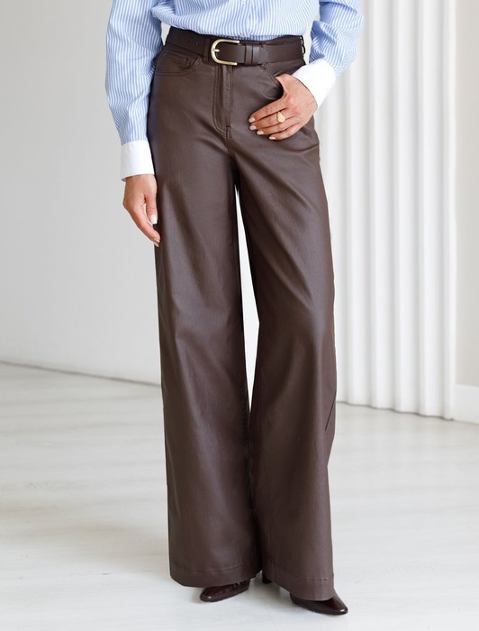 Совместные покупки Омск Женская одежда Костюмы, комплекты — Брюки-трубы из эластичного хлопка с эффектом кожи