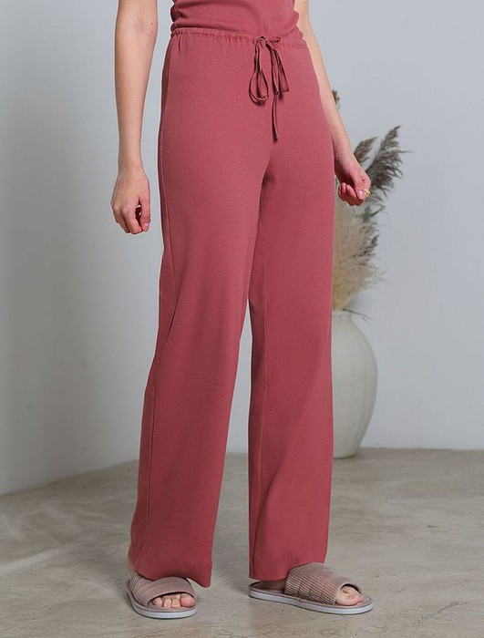 Прямые брюки темно-синего цвета с поясом на тонкой резинке из фактурного трикотажа в рубчик созданы для вашего ежедневного комфорта. Мягкий материал обеспечивает приятные ощущения к телу, а эластичные свойства ткани обеспечивают безупречную посадку на различные типы фигуры, в том числе и большие размеры. Такие домашние брюки отлично подойдут для отдыха дома благодаря свободному крою, облегчающему движения даже в течение длительного времени. Выбирая эти штаны, вы получаете удобство и стиль в одном решении, ведь домашние и повседневные задачи будут проходить с максимальным комфортом. Красивые брюки сохранят свой внешний вид даже при активной эксплуатации, ткань не теряет форму. Брюки подходят для создания уютного образа на каждый день, легко сочетаются с другими предметами гардероба для прогулок и уютных вечеров. Приятная рельефная фактура ткани и аккуратный дизайн создают баланс между стилем и удобством, что особенно важно при выборе повседневных брючек.