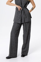 Широкие брюки глубокого синего оттенка, свободно свисают, создавая плавные линии и элегантную силуэтность. Ткань, из которой они выполнены, обладает текстурой, придавая образу нотку роскоши и комфорта. Брюки идеально подчеркивают фигуру, создавая стильный и уверенный вид. Брюки свободного силуэта, расширяются к низу. Пояс притачной на резинке, что обеспечивает максимально удобную посадку на любой тип фигуры, в боковых швах карманы. Длина брюк 108 см.