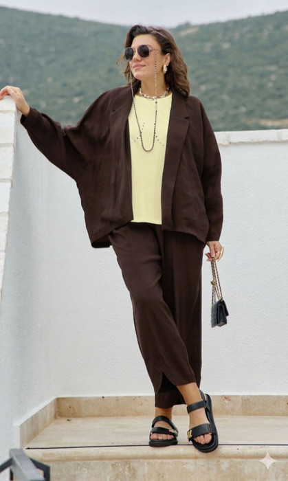 Брюки легко сочетаются с любым предметом вашего гардероба, вертикальные швы стройнят и вытягивают фигуру. Брюки незаменимы для прогулок, посиделок с друзьями, похода в кафе и отдыха. Модель свободного кроя органично впишется в гардероб, всегда будет элегантной и уместной, эта модель «вне времени» и будет актуальна в следующих сезонах. Брюки комфортны в носке на каждый день, создают женственный и элегантный образ. Мы используем материалы высокого качества, делаем акцент на фигуру и современный крой, что позволяет нашим изделиям не терять актуальности, а для вас служить выгодным приобретением. Длина брюк 99 см.