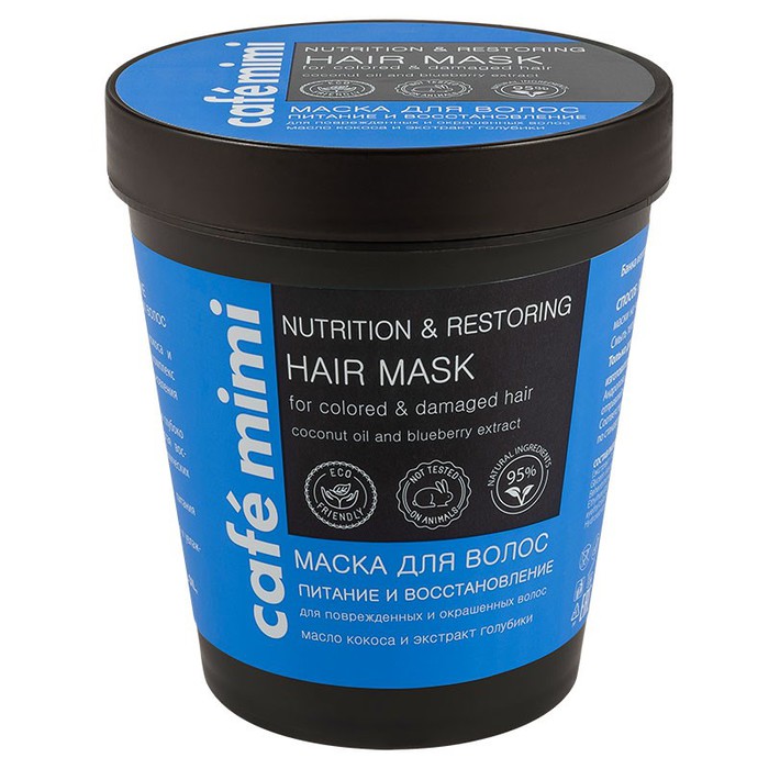 Маска для волос "Питание и восстановление" на основе масла кокоса и экстракта голубики – это эффективный комплекс для питания и интенсивного восстановления поврежденных волос.