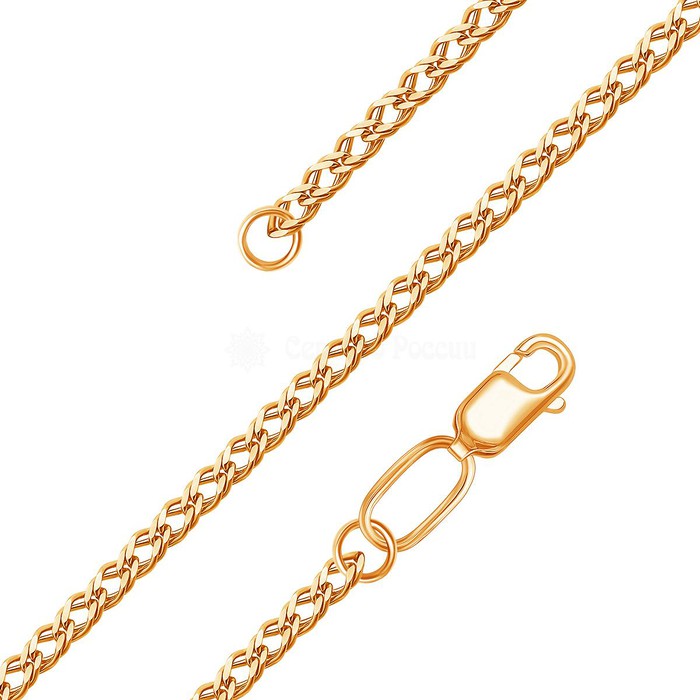 Цепь из золочёного серебра-Двойной ромб 50 см сечение проволоки 3 мм