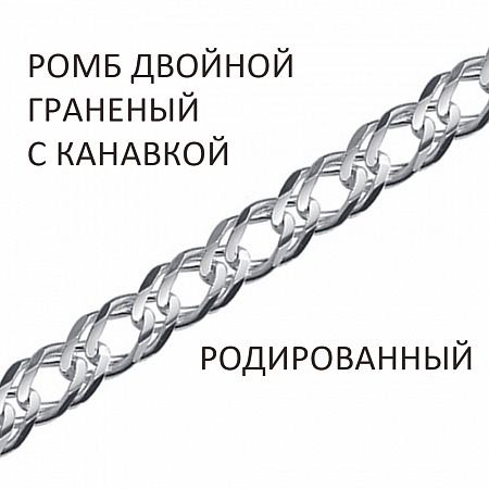 Цепь Ромб двойной с алмазной огранкой и канавкой родированный