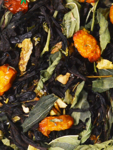 Купаж из классических черных индийских чаев с добавленем чабреца, мяты, сублимированных ягод облепихи, цедр лимона. Содержит пищевые ароматические масла.