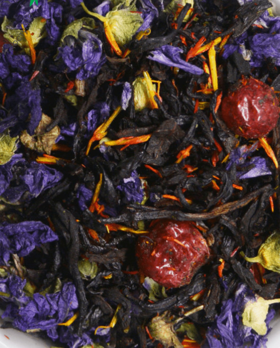 Купаж из классических черных индийских чаев с добавленем сублимированной брусники, лепстков мальвы и сфалора. Содержит пищевые ароматические масла.