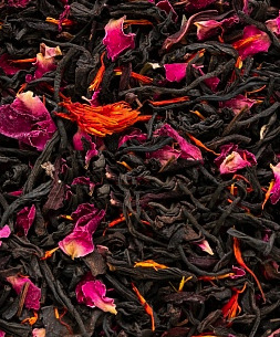Состав: черный Индийский байховый чай, лепестки розы, сафлор, небольшое количество каркаде. Содержит пищевые ароматические масла.;