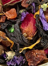 СОСТАВ: Купаж на основе байхового черного чая с добавлением изюма, кусочков сушеного яблока, лепестков розы,календулы и мальвы сушеной вишни. Содержит пищевые ароматические масла.Фруктово-цветочная смесь успокаивает нервную систему и восстанавливает эмоциональное равновесие. Вкусный и ароматный напиток идеально подходит для вечернего чаепития.