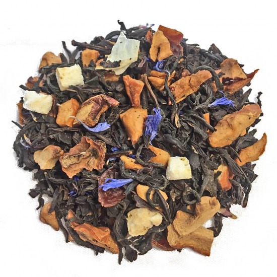 Чай черный индийский, кусочки яблок, шиповник измельченный, кусочки грейпфрута с цедрой, лепестки василька.