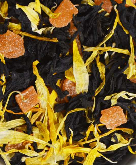 Купаж из классических черных индийских чаев с добавлением цукатов и лепестков календулы. Содержит пищевые ароматические масла.