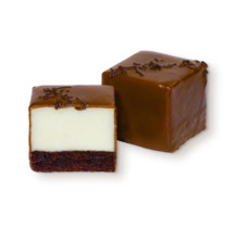 Насыщенный шоколадом слой брауни с воздушным муссом из молочного шоколада, шоколадным бисквитом, покрыт темным шоколадом.