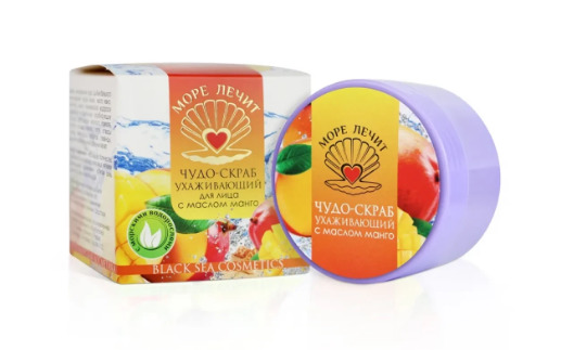 Совместные покупки Омск Косметика и парфюмерия Скрабы, пиллинги для лица — Чудо-скраб для лица Ухаживающий с маслом манго, пластик, 50 мл, "Море Лечит"